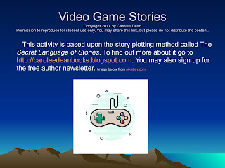 When I worked at a local high school, many of my students wanted to become video game designers. Video games often contain great story plots! I created the powerpoint below to give struggling writers a simple way of creating a story using the format of a video game. Ideally the powerpoint would be downloadable for each student and they would write directly on the slides. I'm still working on a way to make that more accessible, so sign up for my newsletter on the CONTACT page if you want updates. In the meantime, you may share the link below to the power point/YouTube video with your students. You will have to pause each image or it will automatically move forward since it is a video.