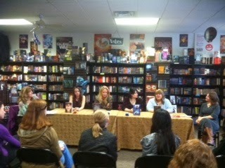 Wednesday afternoon Kimberley Griffiths Little (far left) and Caroline Starr Rose (far left) hosted a dynamic panel of authors at Alamosa Books for the Fierce Reads Tour. (Left to right - Jessica Brody - author of Unremembered, Leigh Bardugo - author of Siege and Storm, Jennifer Albin - author of Altered, and Ann Aguirre, author of Horde).