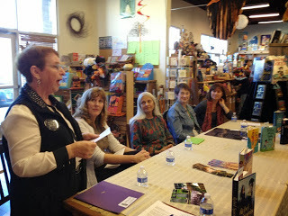 Authors shared their thoughts on writing books as a part of a series vs. creating stand alone stories. Jennifer Albin told how she wrote the first draft of her first novel during National Novel Writing Month (NaNoWriMo). Her husband had lost his job, they had gone bankrupt, and she used the computer in the library to create her story because she didn't have a computer of her own. She rewrote and polished her story to perfection, of course, but it all started with that NaNoWriMo first draft. Selling the Crewel World series to Macmillan Publishing changed the course of her life. She continues to promote NaNoWriMo.