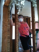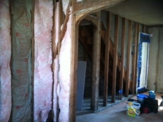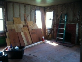 Miss May survived hurricane Sandy, but the first floor of her home was uninhabitable. This is what her living room looked like when our work crew showed up to tear out the remaining walls and put up dry wall this past July. The week prior another group had come through to put in the sub-flooring.