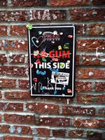 After a few silly poses, we started asking questions. How does something like this get started? Was there a sudden plot to decorate the wall in gum or did little blobs of Juicy Fruit just accumulate over time?