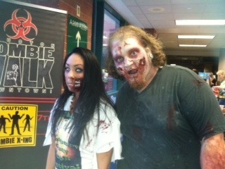 On February 2, I went to The Woodlands near Houston, Texas for the Montgomery Book Festival. Author Jonathan Maberry was one of the keynote speakers, and in honor of his Rot and Ruin series members of the Zombie Walk were on hand for photographs. These zoms may look terrifying, but they're all heart. The Zombie Walk has nine different events currently scheduled for 2013 to raise money for local children's charities.