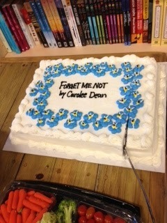 And finally, no book launch would be complete without a cake. Thanks again to everyone who came out for the event. For those of you who weren't able to make it, there are autographed copies of FORGET ME NOT at Alamosa Books.