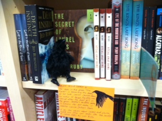 There was also a Raven Trivia Challenge. People searched the bookstore looking for the eight ravens hidden among the shelves. Each raven had a yellow card that displayed a bit of raven trivia. They answered the questions and then turned in their answers to be part of a drawing.