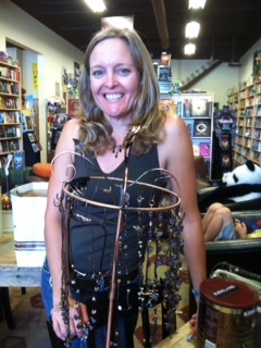 Earlier in the week I was absolutey stunned when I met Sherri Erler, Shauna Mellady, and Debi Hennigen at Alamosa Books to work on the display for the book launch and saw the amazing pieces they had created. Here is Sherri showing off her many different styles of forget-me-not bracelets, necklaces, and earrings.