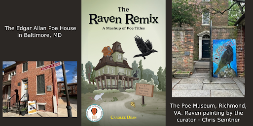 Although my setting for The Raven Remix is fictitious, it takes place in an old house that has become the Ed A.P. Bookstop, Pet Shop, Inn & Grill. A boy stops by for a visit and meets the host - Ed. When he opens a mysterious book with a raven on the cover, animals appear from various stories by Poe. You can find five of them on the cover. The ebook version of The Raven Remix is currently available for preorder. The paperback and hardcover are coming May 15.