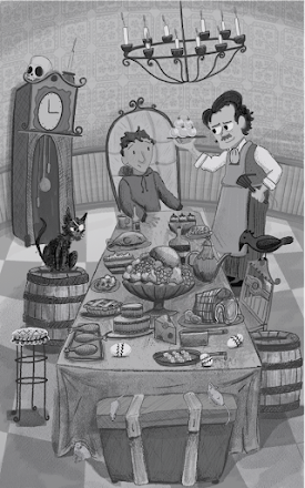 Krista Weltner created the cover image for the Raven Remix and the Illustrations. One of her illustrations from the book is below. A young man visits the Ed A. P. Book Stop, Pet Shop, Inn & Grill to be greeted by a most unusual host. The boy opens a book, and animals from various Poe short stories emerge. The background section includes exciting facts about Poe's life and interesting theories about his death.