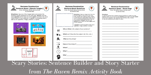 Many of my students have difficulty constructing basic sentences and paragraphs. Writing can be intimidating. For that reason, I'm including a fun fill-in-the-blank story starter for this month's AWE activity. I included a mini word matrix for the base element SPECT (as in specter). There are a series of questions to help students build a complex sentence. To learn more about using the matrix for Structured Word Inquiry and morphology instruction, see my blog post HERE. Find the downloadable PDF for the sentence/story starter HERE. It includes the three pages seen below.