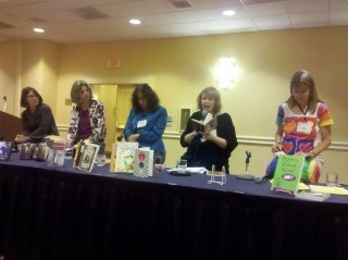 The poetry panel on Forms and Faces of Poetry for Teens included (left to right) Ann Burg, Jen Bryant, Margarita Engle, Pat Mora and April Halprin Wayland. They talked about their poetry and read aloud from their novels in verse. It got me excited about my own novel in verse NO WAY OUT, coming in March 2012 with Simon Pulse.