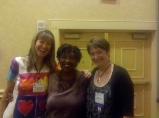 On Sunday morning Nikki Grimes gave suggestions for conducting poetry readings at schools in Open Mike: Reaching Teens at Risk Through Poetry. That's her in the middle with April on the left and me on the right.