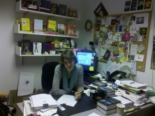 Here I am below showing off my new book trailer to Caroline Rose. Josh Stuyvesant, a film student at UNM put together the video and his friend, Kyle Ruggles, did the music.