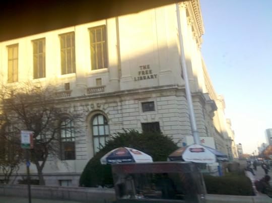 I was able to fit in some sightseeing while I was in Philly. The picture below is of the Free Library. The tour guide on the city bus tour said that Edgar Allen Poe's pet raven was stuffed and preserved in the library. I hadn't realized that Poe had lived in Philly. I also didn't know he had a pet raven. It kind of puts his poem in perspective. I was especially interested in this little piece of trivia, since my new novel, NO WAY OUT (Simon Pulse, 2012) contains a poem that's a spoof on the Raven.