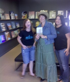 July 27 (www.girlsinthestacks.com). Tommye was behind the scenes taking pictures. Here we are on the third floor at Legacy Books in Plano, Texas. What an awesome bookstore. What awesome bloggers!