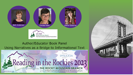 Understanding Sensory ProcessingSymptoms ChecklistContinued Education for Professionals.Jolene and I will be presenting an author/educator panel with Beth Anderson on Saturday, September 30 at the Reading in the Rockies Conference at the Copper Mountain Resort in Copper Mountain Colorado. The subject is "Using Narratives as a Bridge to Informational Text." Find out more about the conference and my other 2023 presentations (including ASHA and IDA) on my EVENTS Page.