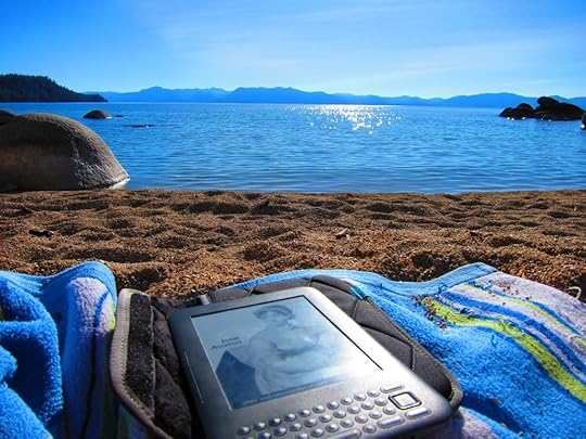 Reading Jane Austen at Chimney Beach in Lake Tahoe