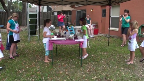 There’s not much action going on, and we have no idea where to look. We don’t know if the filmmaker wants us looking at the little girls at the table (left), the mom taking a shot (right), or the little girl watching (farther right). Or even the women in the background.
