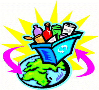 Recycling is just reusing something that would otherwise be thrown away. If you live in a city that promotes recycling, you probably see recycling bins everywhere. Recycling bins make it easy to separate plastic, paper, aluminum cans, glass, magazines, newspapers, food, and other products. According to Duke University's Center for Sustainability and Commerce, 4.3 pounds of waste--garbage--is created each day by every person in the United States. Wow! That's over 220 million tons of things we throw away each year, and over half of that goes into landfills. (Landfills are places where trash is dumped, burned or allowed to deteriorate and eek into our environment)