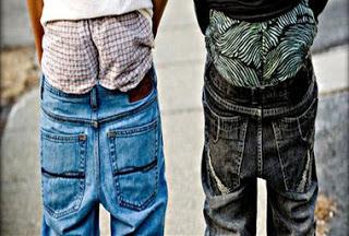 At first, when they started strutting around the house with their “chones” (underpants) exposed I tried to reason with them. When that didn’t work I started strutting around the house with MY pants below my butt. It really grossed them out… I’m not sure why... but it did the trick. Alas, regulating their behavior at home was not enough. Sooner or later they would go out into the real world and it was a simple matter (once out of parental sight) to loosen their belts and drop their pants.