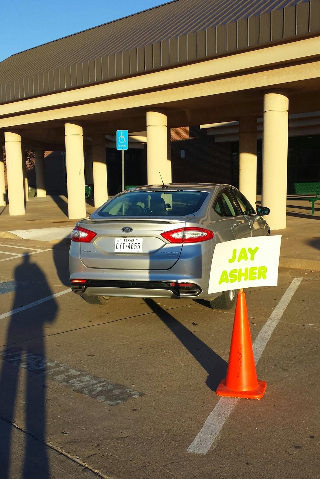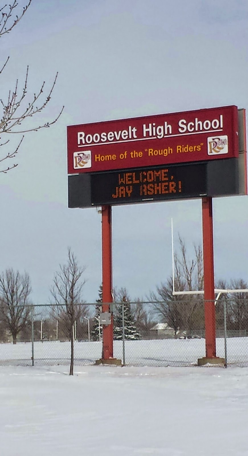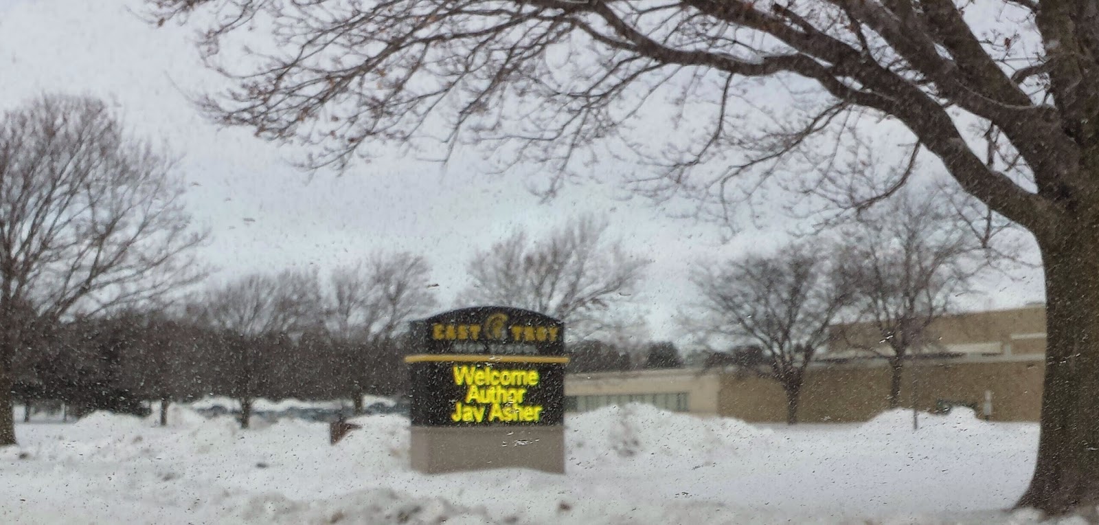 The next day, though, was the reason for my time in Oklahoma. I arrived at Santa Fe High School, and even though my name wasn't on their marquee, they accidentally left a tribute to my book. Just like on the title graphic of Thirteen Reasons Why, the numbers (1 and 3, even) were in red!