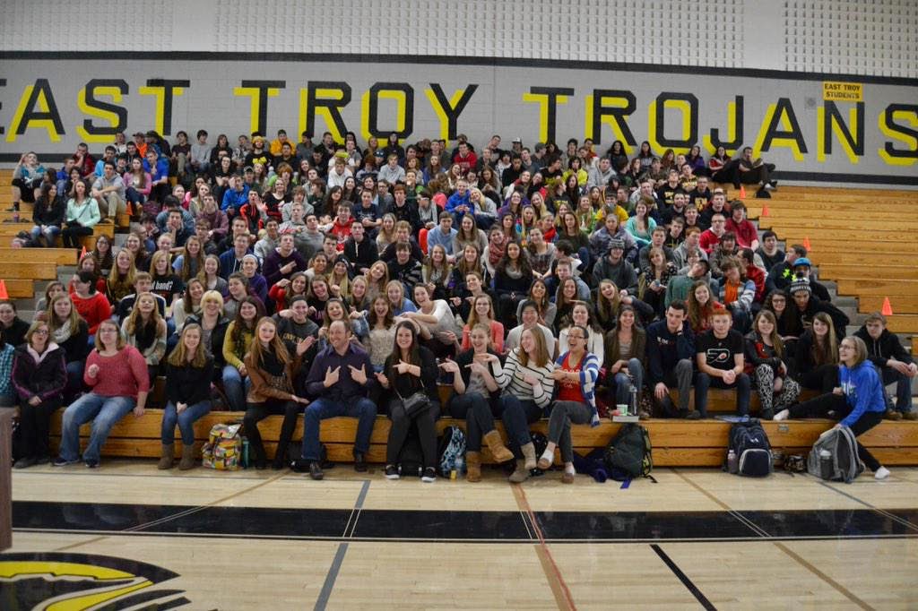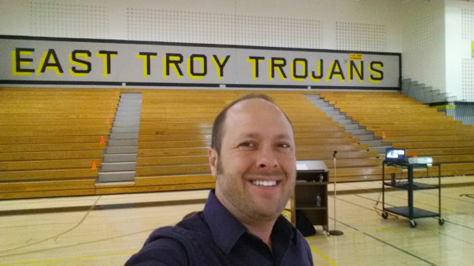 My twenty-seventh stop on the 50 States Against Bullying campaign brought me to East Troy, Wisconsin. When I arrived at the school, the sign out front welcomed me by telling me it was 10-degrees outside of my warm car.