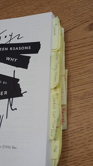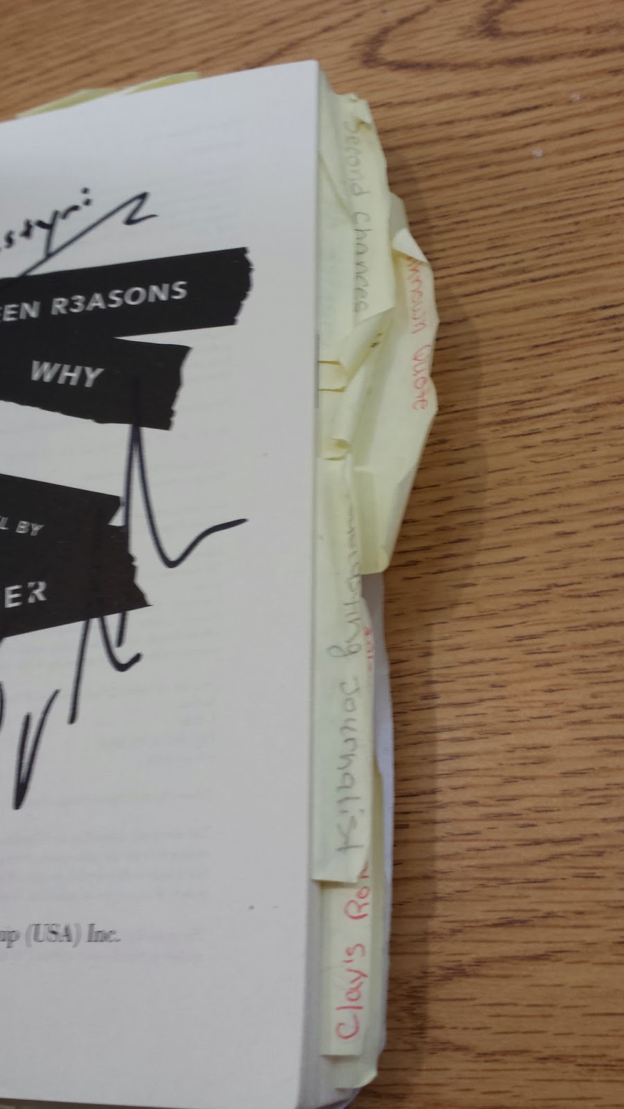 There was a banner at the school with Thirteen Reasons Why buttons attached, which were made by the school, and students were invited to wear them ahead of my visit. One dude "somehow" managed to have thirteen with him for the event, and I signed them all.