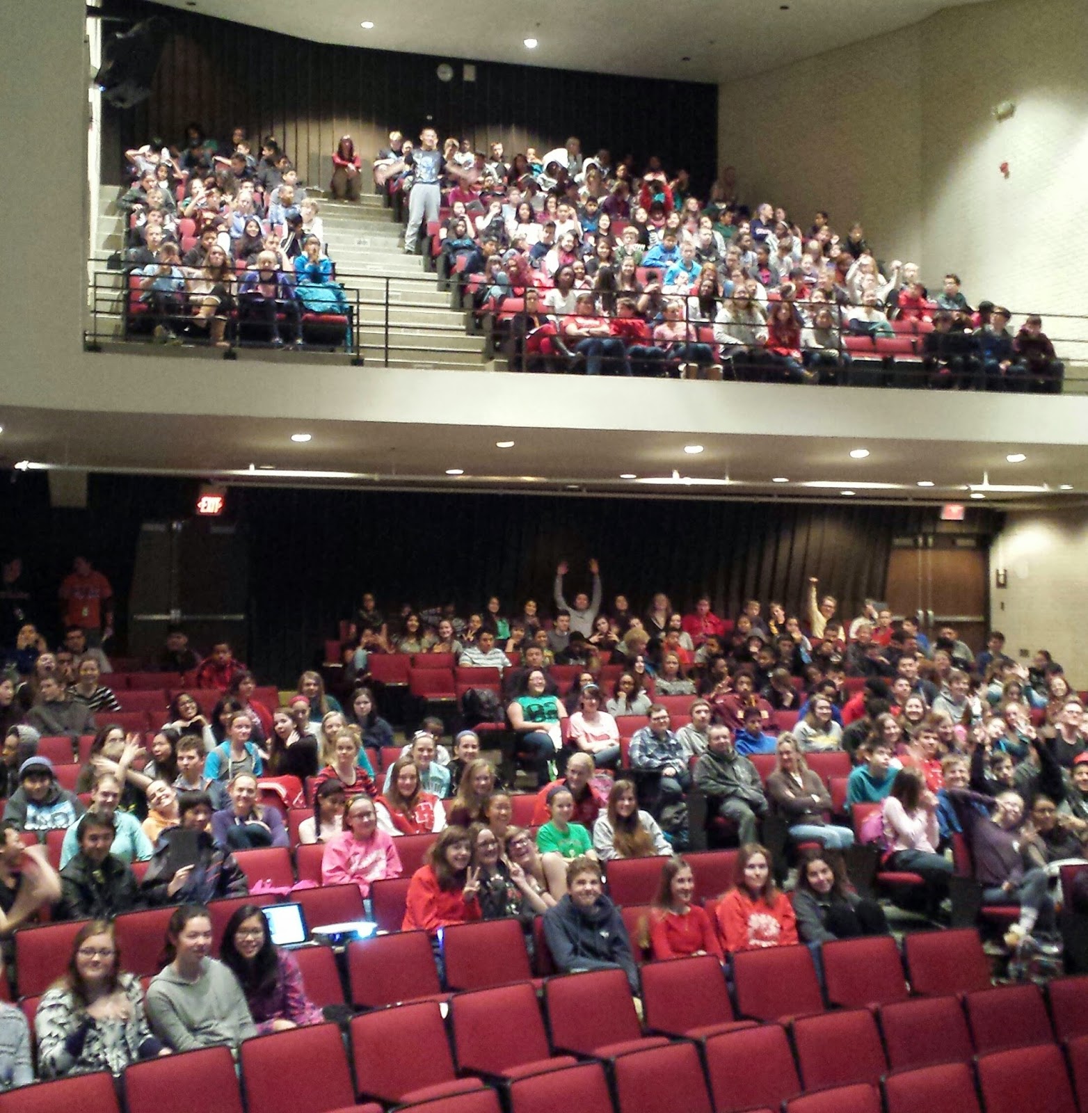 As many of you know, my favorite part of being an author is speaking to readers. But many of you don't know, or don't believe me when I tell you, that I get major stagefright. I enjoy myself once I begin, but leading up to it is Anxiety City. Especially when I watch the students start piling in! Here's an unposed photo of that moment. And I do believe you can see the fear in my eyes.