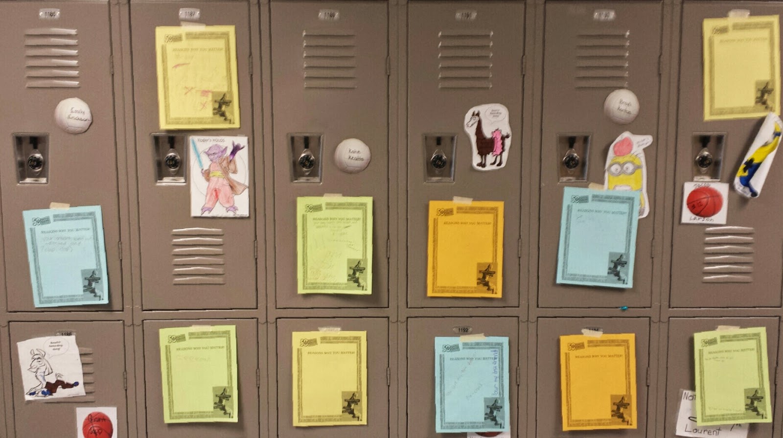 During both presentations, I told the students that flyers were currently being taped to their lockers. When they left the auditorium, they were encouraged to leave positive messages for other students about why those students matter.