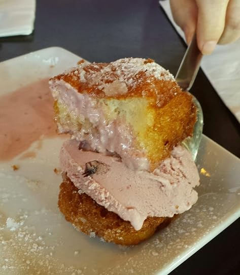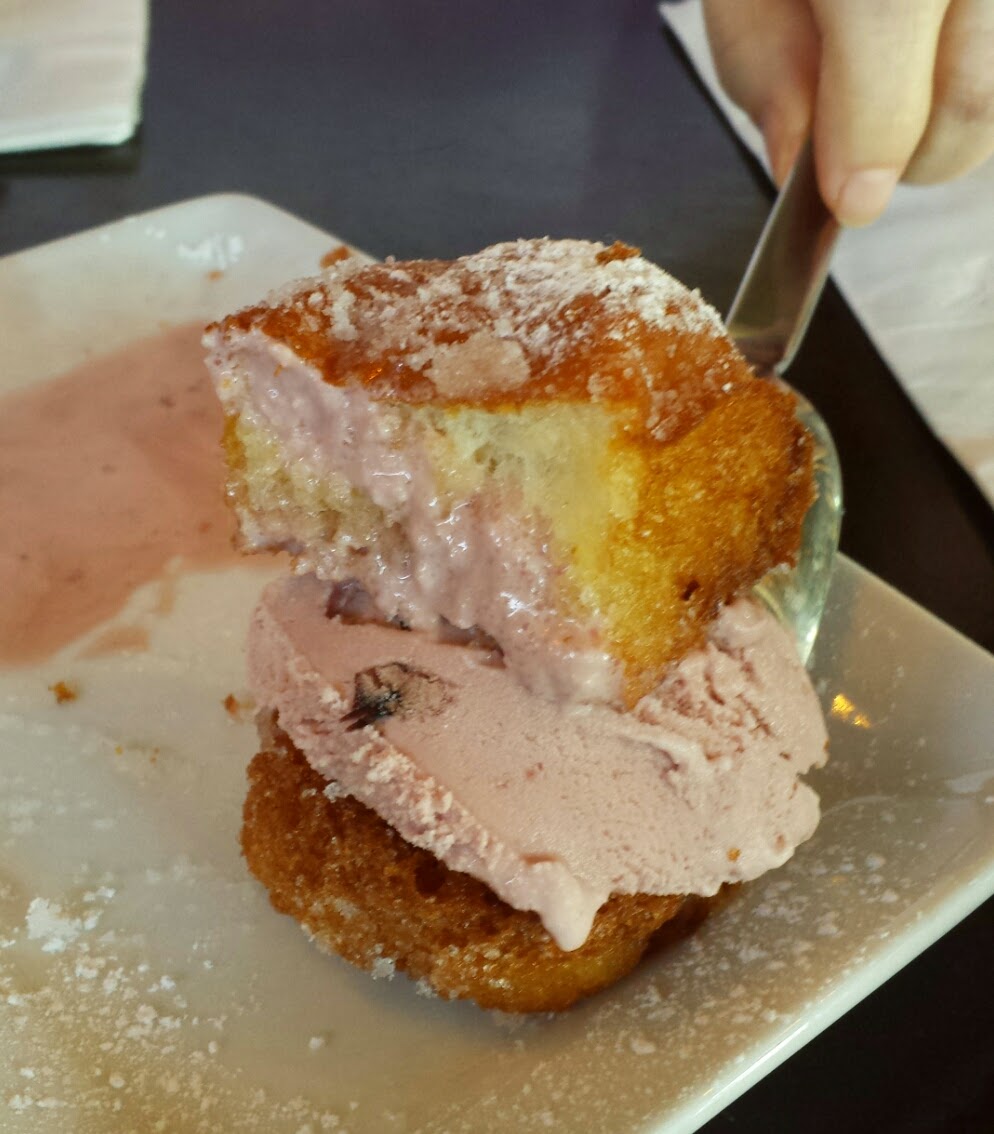 For dessert, we had the most delicious thing I've tasted in a long time: red bean ice cream between warm beignets.