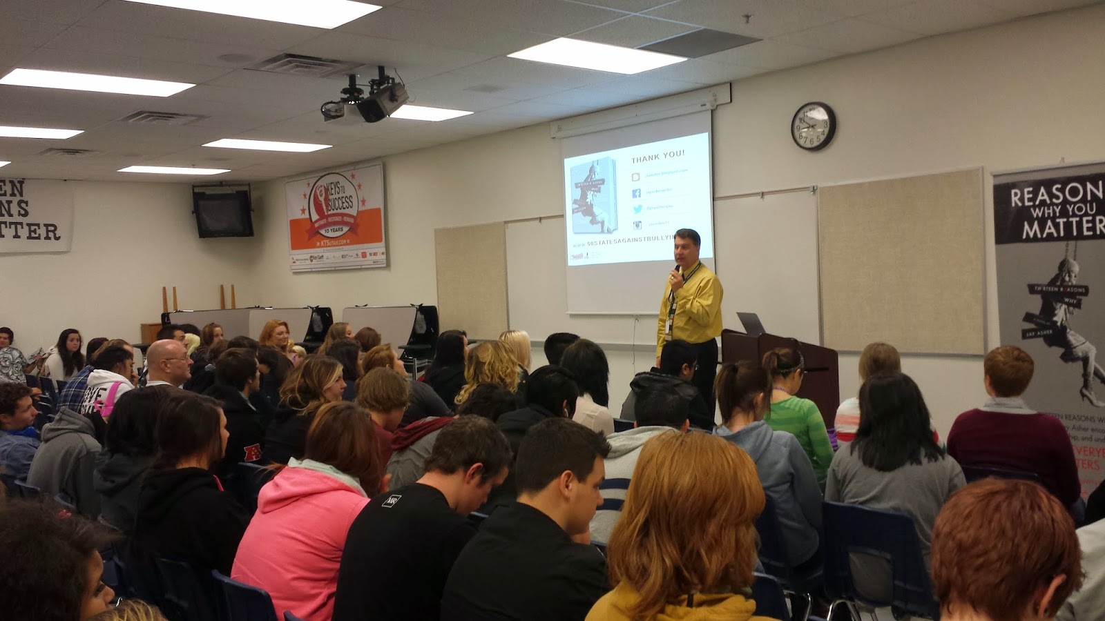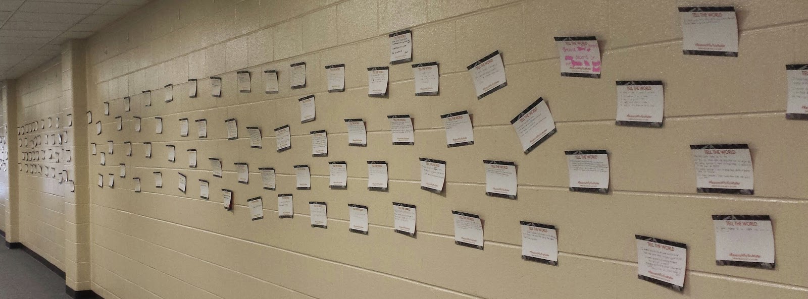 Stop twenty-three on the 50 States Against Bullying campaign brought me to South Carolina. On Friday, I had the chance to speak at two nearby high schools. At Hanahan High School, the front of the stage was full of #ReasonsWhyYouMatter cards.
