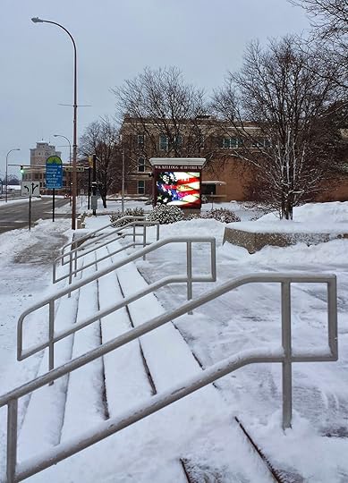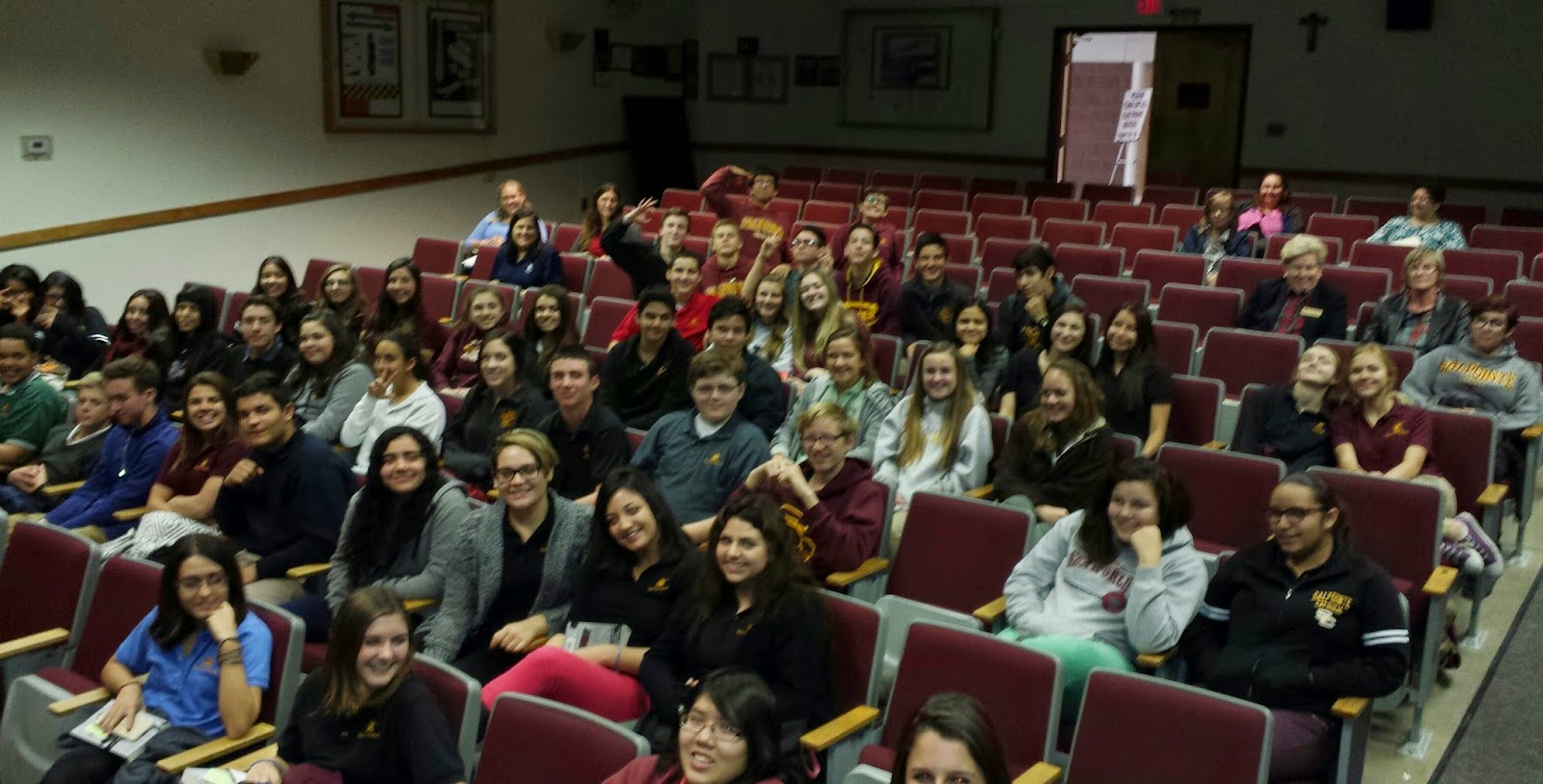 The next morning, I arrived at the Kellogg Auditorium for my presentation. Lakeview High School in Battle Creek was selected as my Michigan stop, and that school was generous enough to move the event to a larger venue so several neighboring schools could also send students. Two of those schools, unfortunately, were having a Snow Day.
