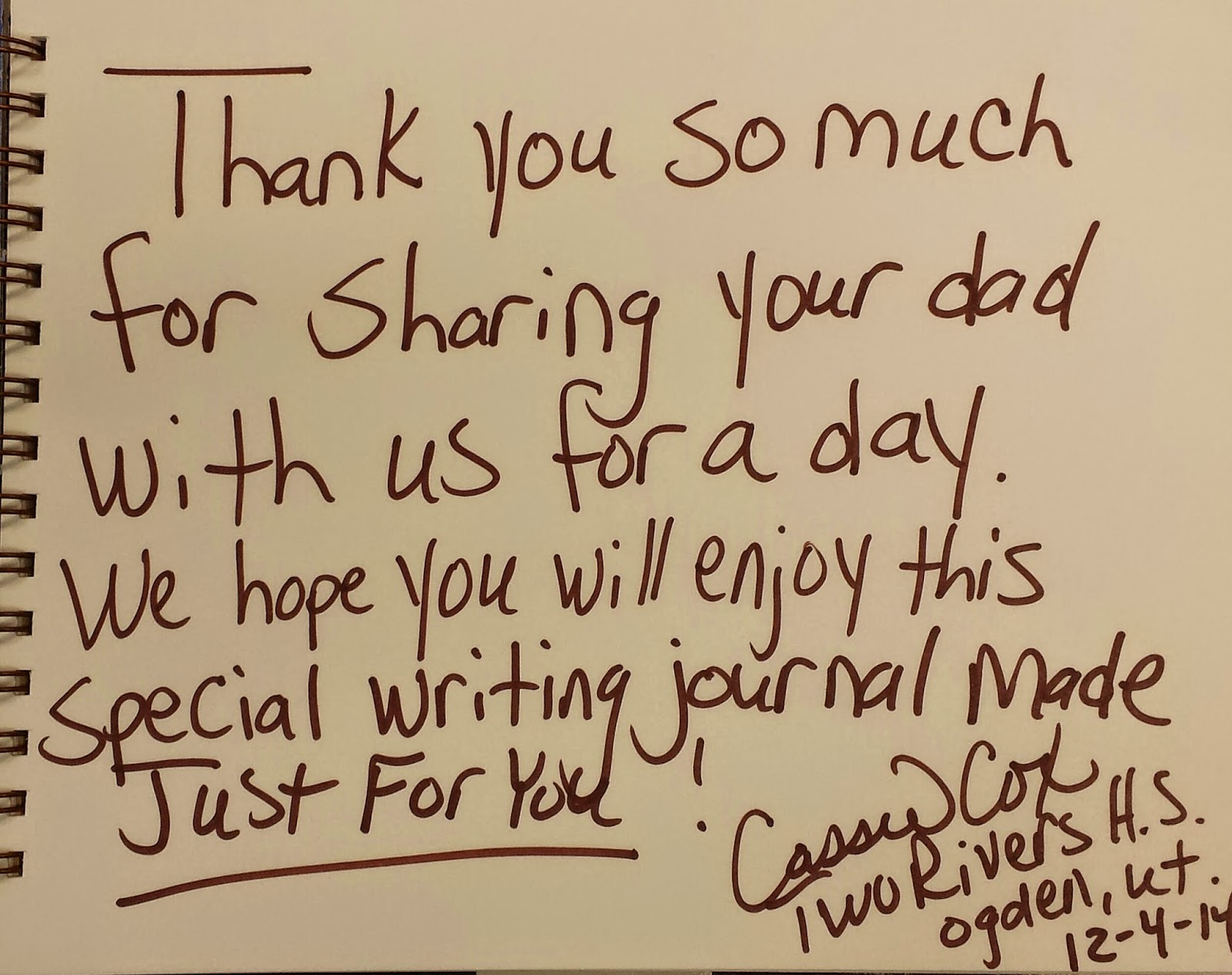 Speaking of inspiring! Ms. Cox continues to prove that she is one of the most inspiring teachers I've met in my seven years as an author. The programs she puts together for her students every year is astonishing. Before I left Two Rivers, she presented me with two writing journals made out of books. One was for me, and one for my son, Isaiah. Spiral-bound, they combine original pages from the books with blank pages.