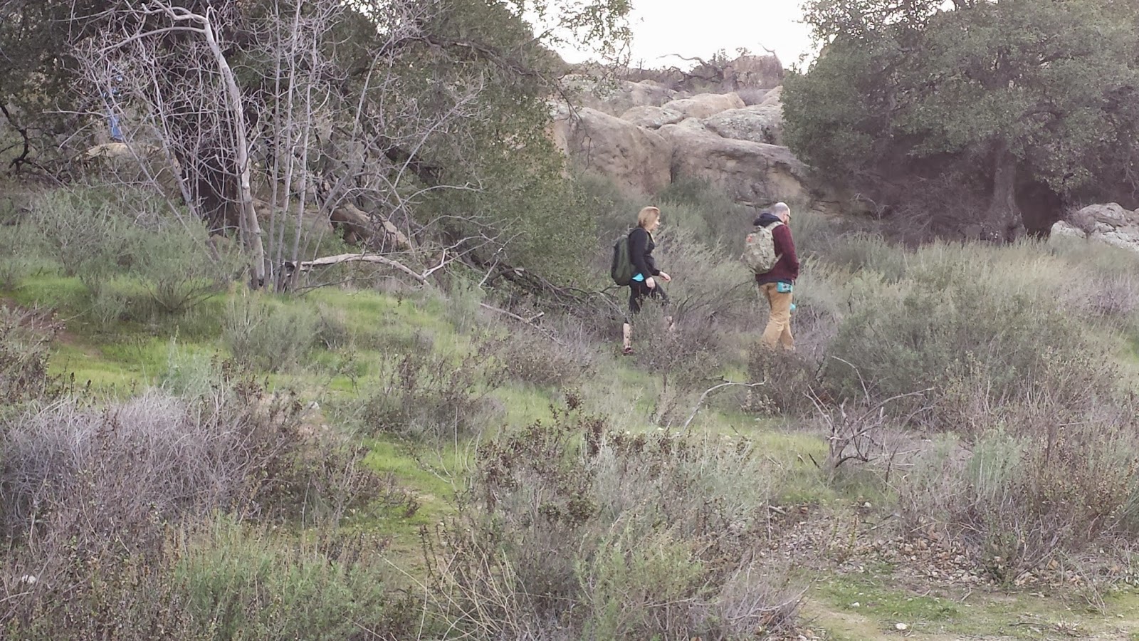 But in 1969, Manson and his followers called this place home. The directions we found online were hard to decipher, so we found ourselves wandering through a lot of brush. Most of the directions did remind us to watch out for rattlesnakes, but they never warned that if you use a rattlesnake app on your phone to make people jump and scream, it's "Not funny!" (In truth, it's very funny.)