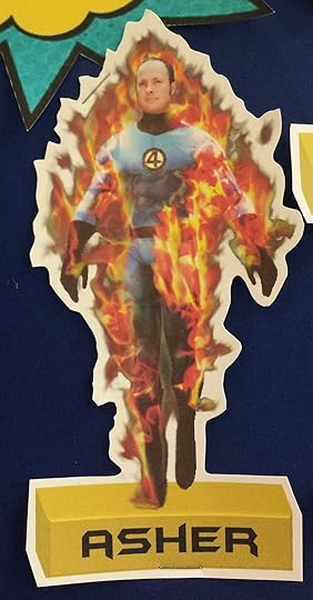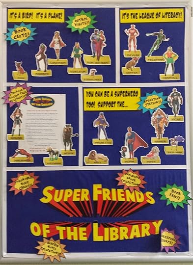 They also had a fun display, superimposing faces of people who help out the library onto superheroes. (Did you see what I did there? I used the word super twice!) And after a bit of looking, I found myself included.
