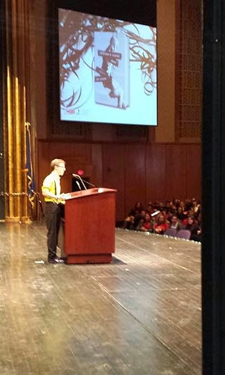 Here's a photo I swiped from the school's Twitter account of me speaking with their students, almost all of whom had read the book. (Is that the correct use of whom? I usually avoid that word if I'm unsure. But I think this is right. Right???)