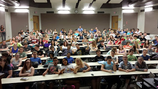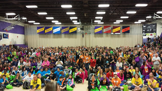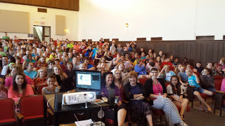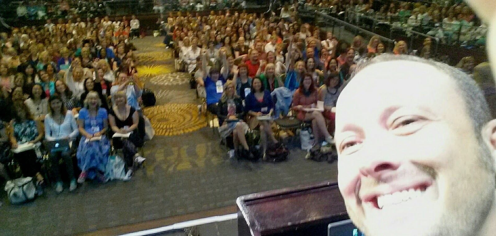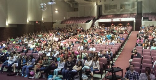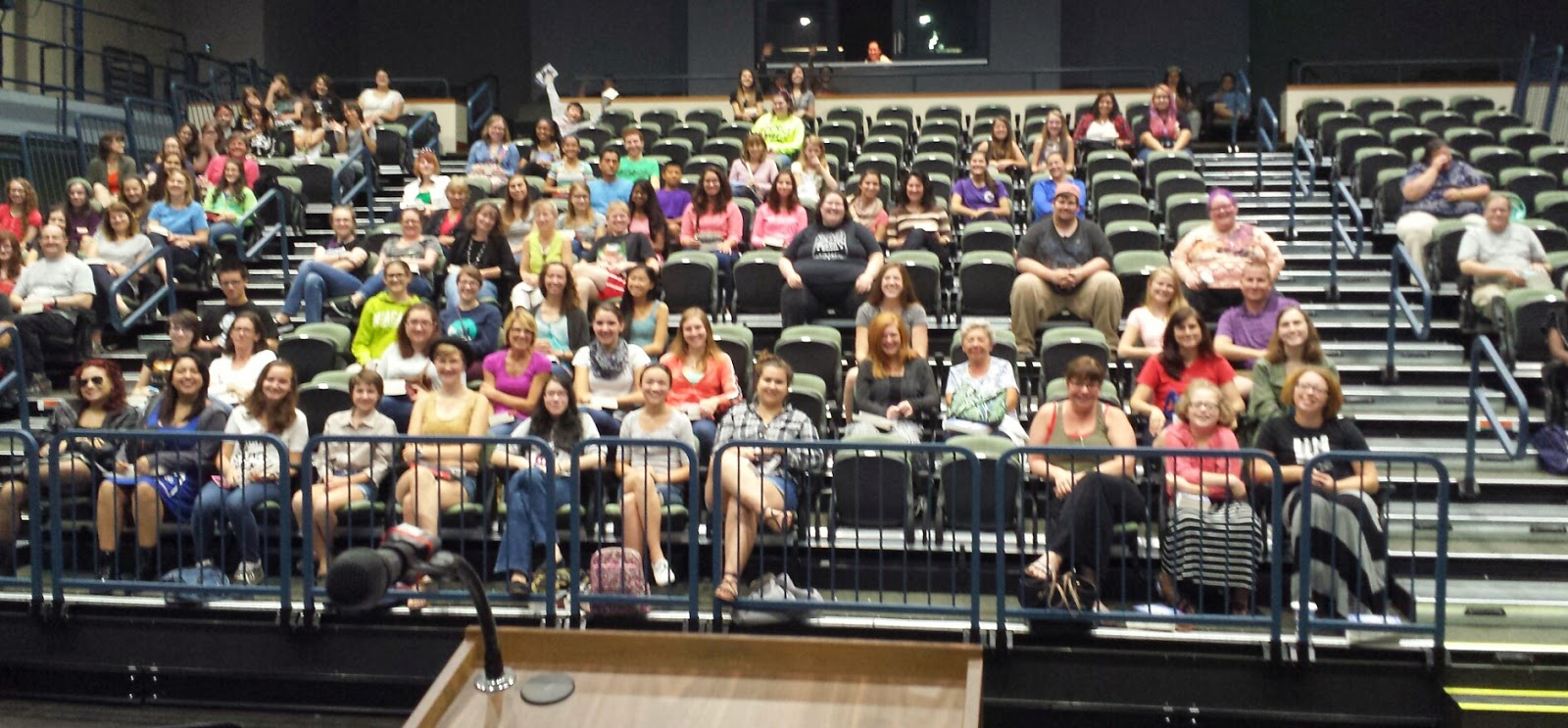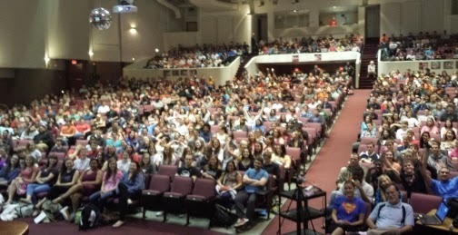I have no idea how many teens attended this massive literature rally, but this pic shows the people right in front of me. It doesn't show the packed stadium seating on both sides.