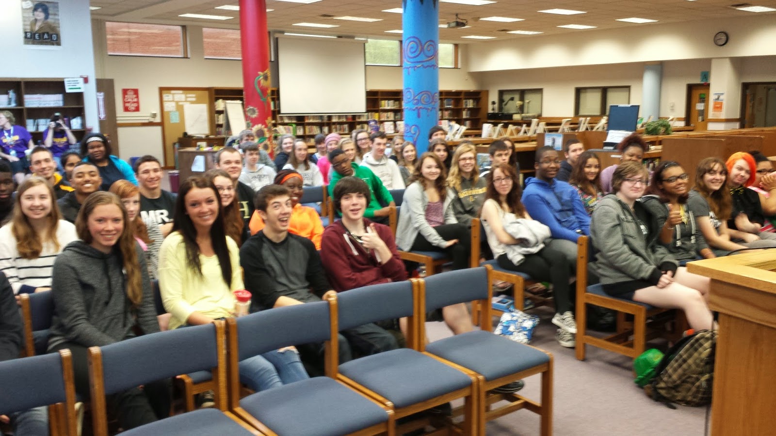 Between the second and third assemblies, I had lunch in the library with about 120 students. For nearly two hours, I ate half of my food because I was doing Q&A the entire time. I've never had that much time to answer so many great questions, and it was wonderful!