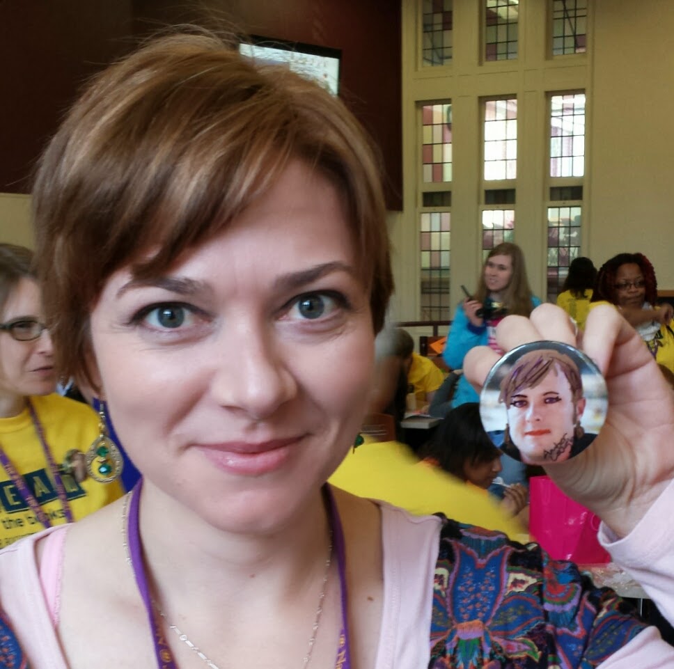 Each author was given a bag of pins with our faces on them to hand out. A late-addition to the author crew was Amber Lough, my sister-in-agent. Since she didn't have her mug on a bag of pins, she beautifully turned one of mine into a mirror-image of herself.