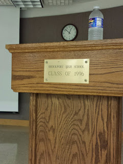 Back at Brockport High, about to begin speaking, I noticed the podium was a gift from the Class of 1996. 1996? That's the year in which Carolyn and I set The Future of Us.