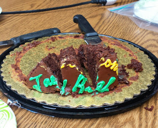 During lunch, we had cake, and everyone was kind enough to avoid eating my name. Isn't that sweet?
