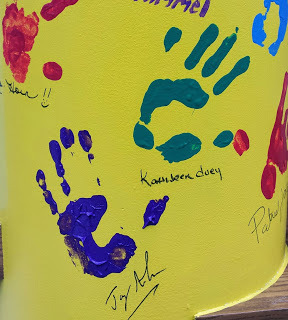 The library has a column where authors and librarians leave handprints. I found the perfect spot for mine, just below my mentor, Kathleen Duey.