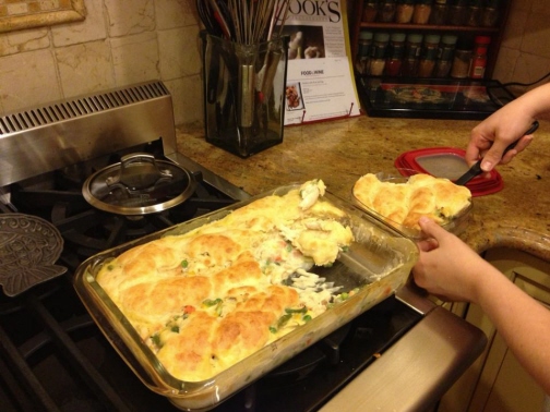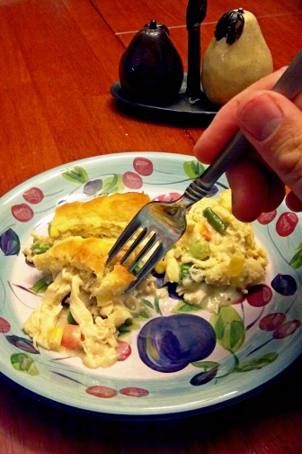 JoanMarie and her mom were at The Great American Melodrama, so the first helping went to Isaiah. The chicken pot pie more than passed the 2-year-old test. (My son is 2-years-old, not the pie. The pie was only 2-days old!)
