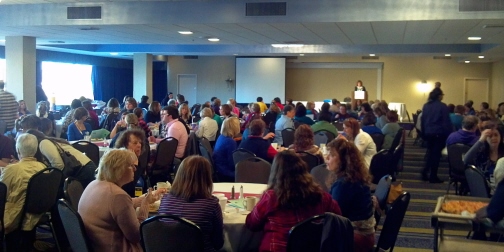 The next morning, I gave a presentation as this crowd of librarians ate breakfast.