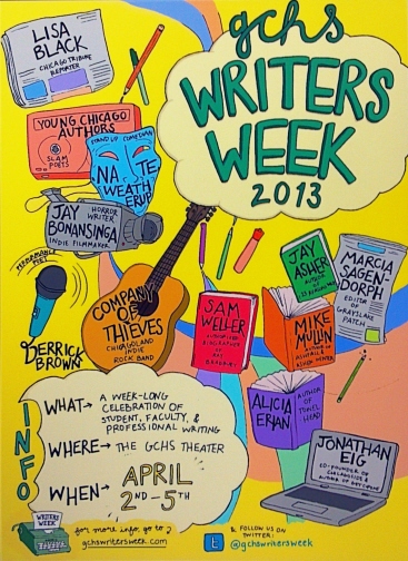 Over two days, just outside of Chicago, I spoke at Libertyville High School and Grayslake Central High School. Both schools were hosting their own version of Writers Week, bringing in many types of writers to speak to the students about their passions, as well as giving students the opportunity to read their works in front of their classmates.