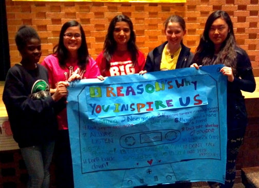 Back outside of Chicago, in the town of Skokie, I spoke at Lincoln Junior High and Fairview South School during the day. At Lincoln, I spoke in the gym, beneath a beautiful ceiling I totally should've taken a picture of! At Fairview South, a group of girls came in before my presentation to hang a beautiful poster.