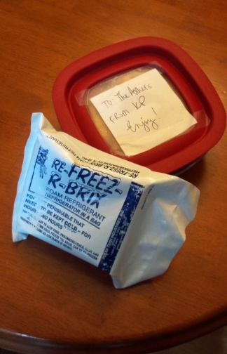 So Kristen and I bantered back and forth in the comments section (click the above photo to see how that went), and soon she was posting step-by-step pics of the pie's journey from NY to CA.
