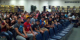 Here's one student reading in front of a packed auditorium at Libertyville shortly before my presentation.