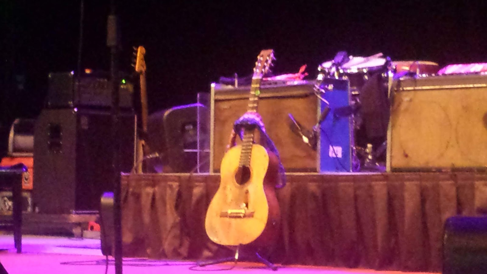 The hat I'm wearing above was purchased at the previous week's show, where JoanMarie and I celebrated the good times of our marriage by going to see Willie Nelson. First to take the stage, of course, was his iconic guitar, Trigger.