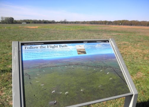 With time running out before that evening's speaking gigs, I drove to the Huffman Prairie Flying Field where the majority of the first powered flights took place. There, you can see replicas of the garage/hangar where they stored and repaired the flyers, and the metal pyramid contraption which gave the flyer enough speed for takeoff.