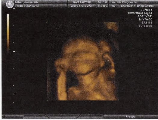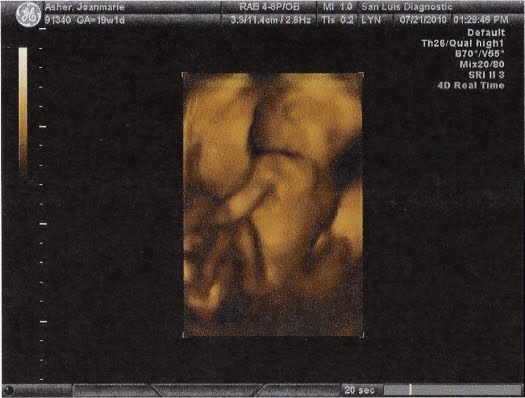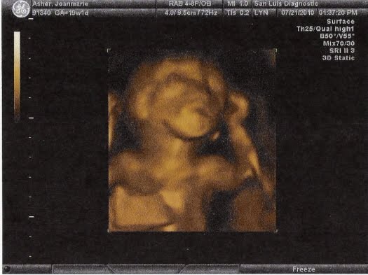 The 3-D ultrasound imaging they do is amazing. We got to watch him kick and squirm and grab his toes. It was so adorable!