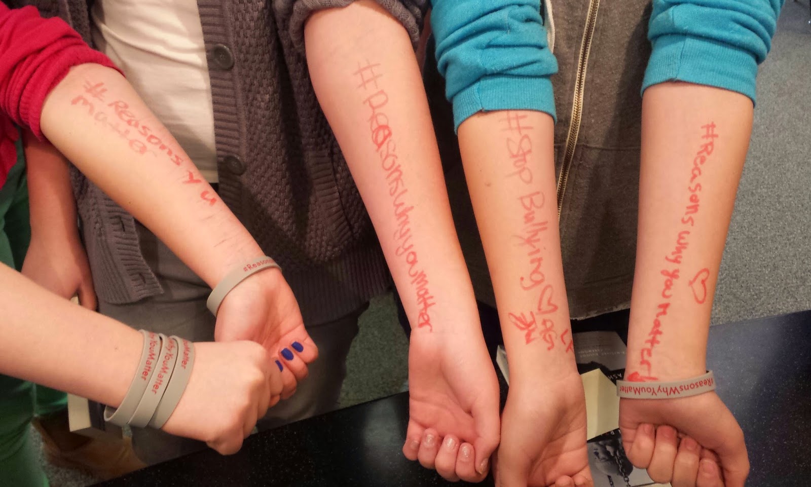 Some students, during the talk, wrote #ReasonsWhyYouMatter on their arms.